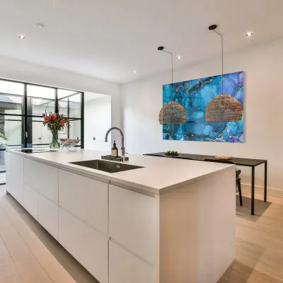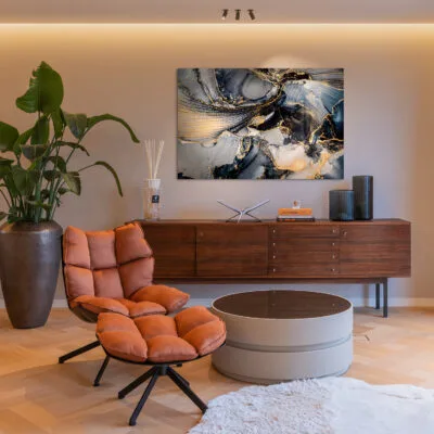 Het stijlvolle en solide aluminium ophangframe wordt door ons aan de achterzijde van de print gemonteerd
